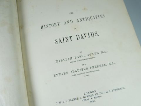 GEORGE WILLIAM MANBY 'History and Antiquities of the Parish of Saint Davids' dated 1801 and being a good volume with aquatint plates and in original half-calf. Together with WILLIAM JONES & EDWARD FREEMAN 'The History and Antiquities of Saint Davids',1856, a special large-paper quarto in green full-calf and with twenty-two fine full-page engraved illustrations