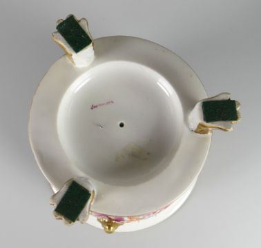 A FINE SWANSEA PORCELAIN CREAM TUREEN, COVER & STAND DECORATED BY DAVID EVANS, circa 1817-1826, the bowl raised and over three gilded claw-feet over a moulded circular platform base, having three lion-head handles and with acorn knop, the cover, body and platform finely painted with colourful floral studies, 17cms high Provenance: private collection, Sussex Auctioneer's note: the most 'French' of the Swansea tureens being close in design to Paris made examples, a similar version also made by Spode described as a 'French cream bowl on three claws'. There is an almost identical example of this rare cream-tureen at the National Museum of Wales in Cardiff Condition: COVER: restored knop and a couple of blemishes to rim but not believed restored BODY & BASE: no problems, feet ok we think, gilding on both elements is not overly worn (very good in our opinion)