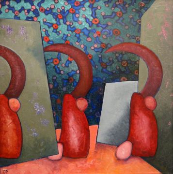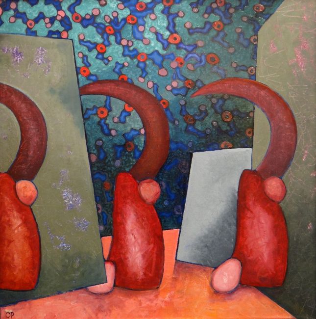 CERI PRITCHARD acrylic on canvas - abstract shapes, entitled verso 'Alphamystena I', signed with initials, dated 2015, 62 x 61cms