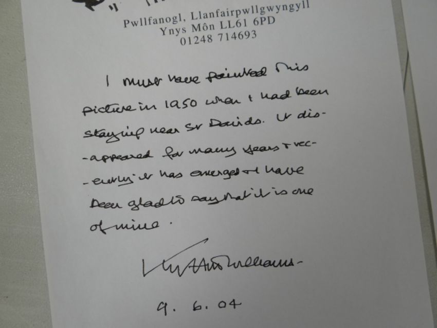 SIR KYFFIN WILLIAMS RA oil on canvas - early career coastal scene with cliffs and squally sea, inscribed on stretcher 'Pembroke Coast' with 'Kyffin Williams', signed with initials to the front, circa 1950, 55 x 75cms Provenance: two letters from the artist confirming the painting as by his hand in around 1950, the paintings have been in the ownership of a North Wales family with gallery connectionscondition report:all good, no issues, there are two hand written letters from Sir Kyffin Williams as provenance, they are copies