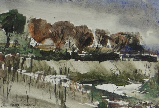 JOHN KNAPP FISHER watercolour - landscape with trees, signed, 11.5 x 16.5cms