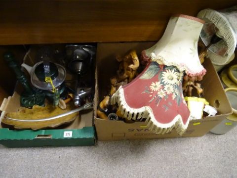 Two boxes of mixed household and decorative items including earthenware provision containers etc