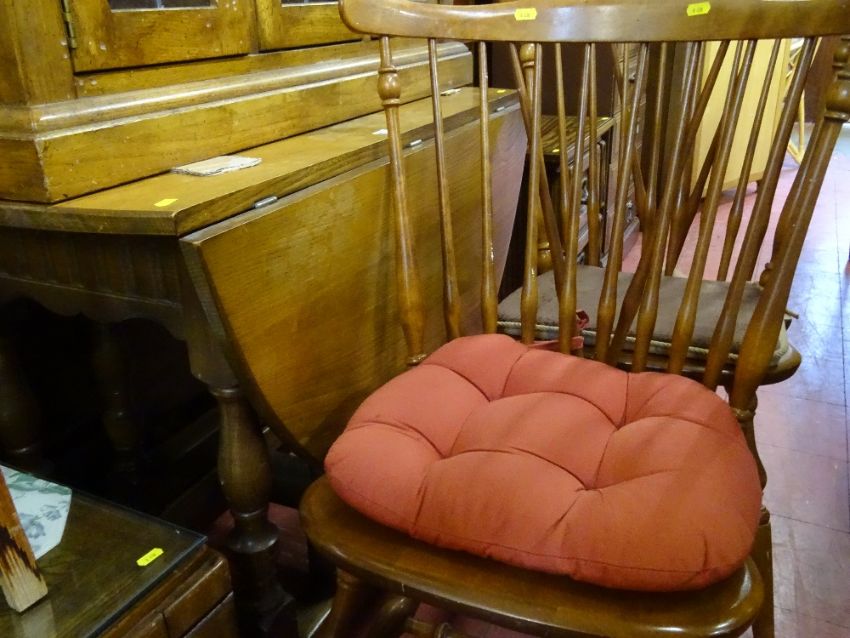 Oval drop leaf table and four chairs, maker 'Ethan Allen'