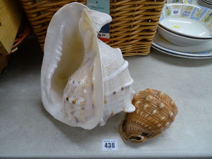 Large conch shell and one other