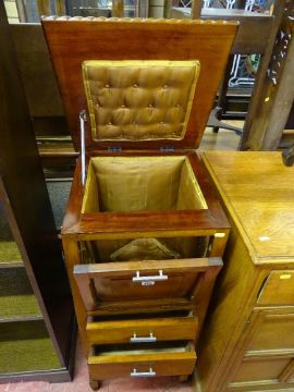 Vintage mahogany needlework cabinet with interior satin lining on barley twist supports