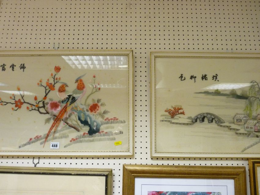 Two framed Oriental silkwork pictures