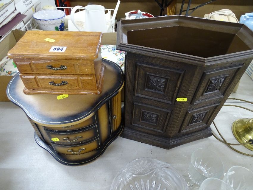 Two jewellery cabinets and a modern planter stand