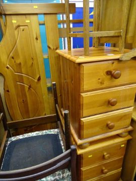 Pair of modern pine three drawer bedside chest and a 4ft 6ins pine headboard