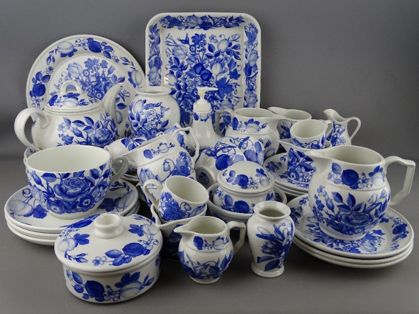 AN EXTENSIVE PORTMEIRION POTTERY 'HARVEST BLUE' PATTERN SET OF TABLEWARE designed by Angharad Menna (over one hundred pieces)