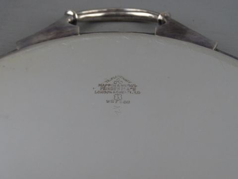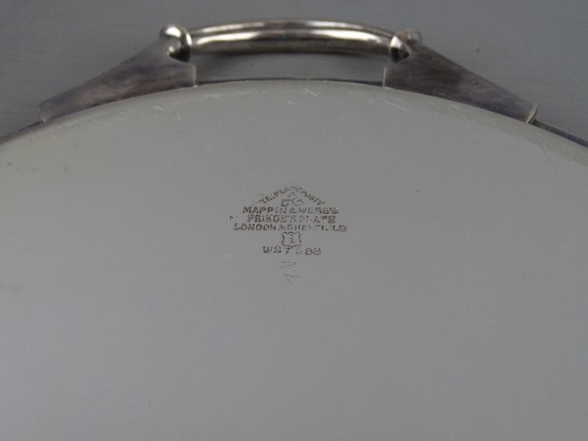 A PEDESTAL ROSE BOWL marked 'Silver', a plated two handled serving tray and three further items of electroplate ware