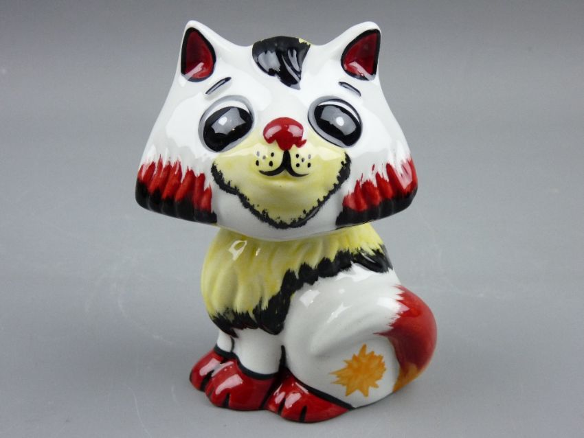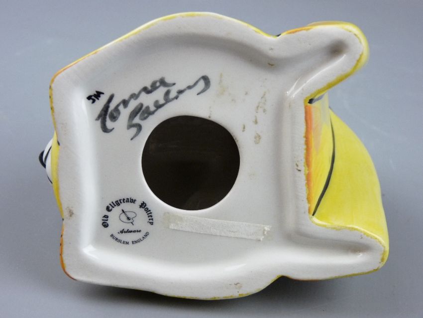 THREE ITEMS OF LORNA BAILEY CERAMICS including a 'Thunderbolt' conical sifter, a playful dog and a smiling cat, various measurements