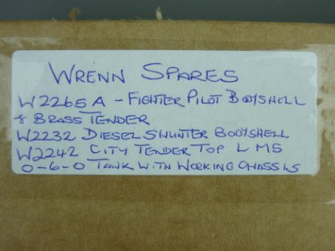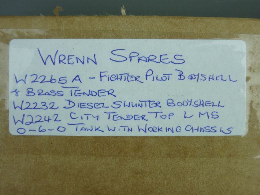 MODEL RAILWAY - Wrenn spares - W2265A 'Fighter Pilot' bodyshell with tender (brass), W2232 diesel shunter bodyshell, W2242 'City of Liverpool' LMS tender top (paint loss on one side), 0-6-0 tank with working chassis