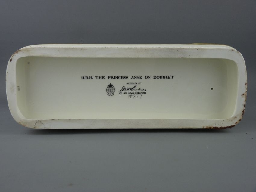 ROYAL WORCESTER EQUESTRIAN MODEL, 'HRH The Princess Anne on Doublet 1972', numbered 277 by Doris Lindner, on a wooden base, height 31cms