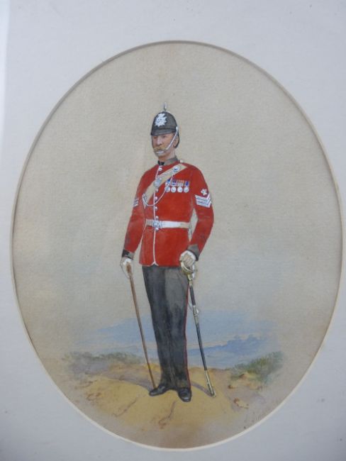 RICHARD SIMKIN watercolour, oval format - military figure, signed and dated, 24 x 19 cms