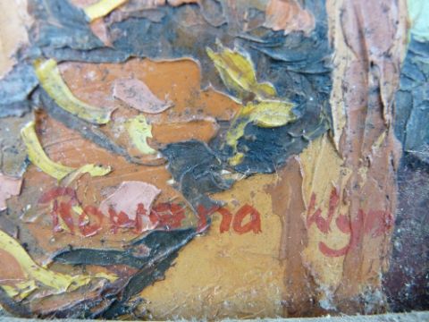 ROWENA WYN oil on board - child at easel, signed bottom right, old handwritten label verso, 44 x 36.5 cms
