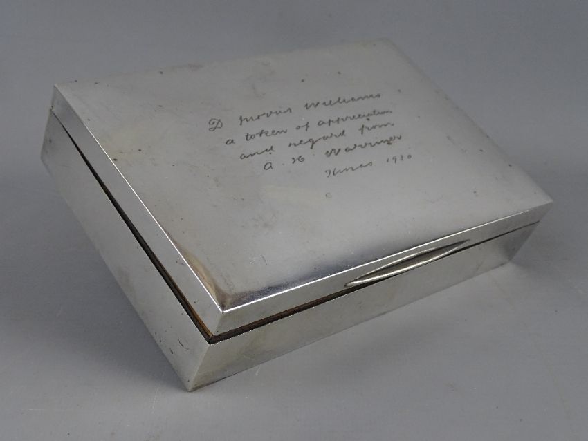 A SILVER CIGARETTE BOX, Chester 1930, 16.75 cms long