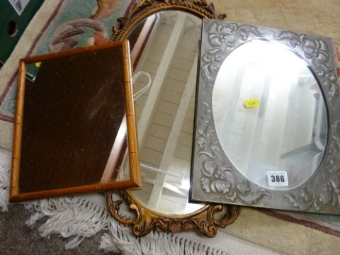 Vintage pewter framed mirror and two others