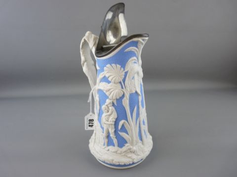Excellent T J & J Mayers, Dale Hall Pottery relief moulded jug with pewter lid