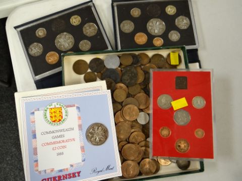 A collection of loose pre-decimal coinage together with some cased early decimal coins