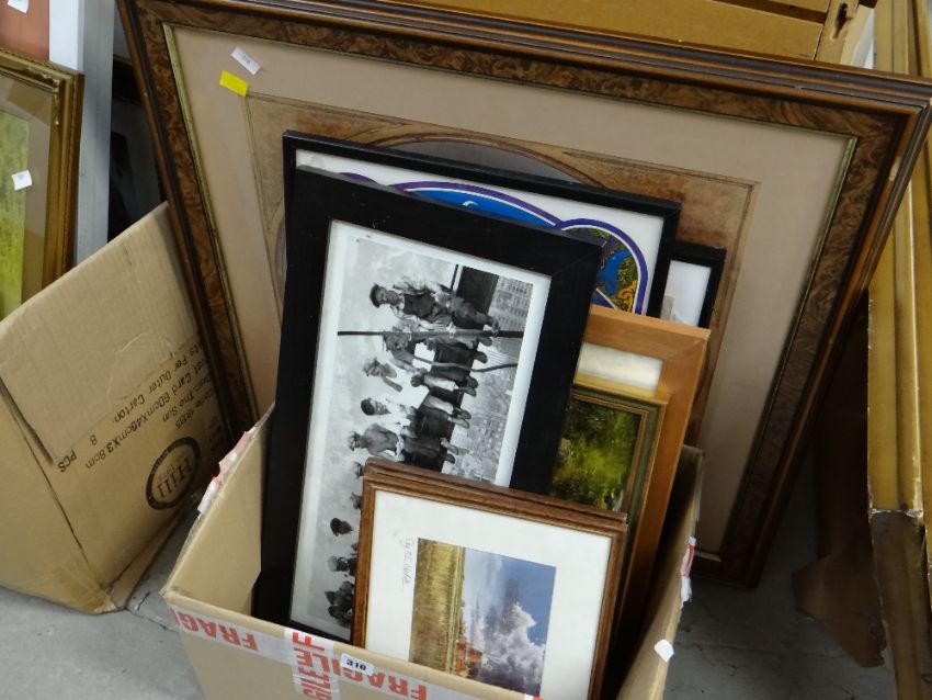 A box of various framed pictures & prints including a Tretchikoff still life entitled 'Weeping Rose'