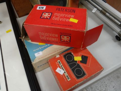 Three vintage slide viewers including the Photax Solar, Paterson Major View & a By-Lens