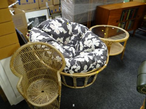Bamboo conservatory cushioned suite comprising two-seater sofa, armchair, coffee table etc