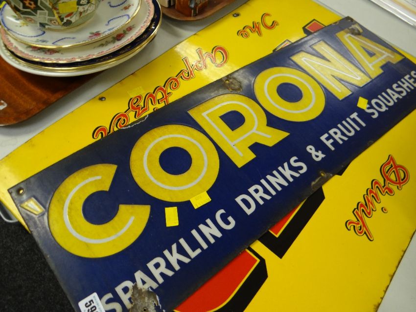Parcel of various vintage metal advertising signs including Vimto, Corona, Coleman's mustard etccondition report:I would say that the only original signs in this lot are the Tizer one, the corona one and the western mail, all the others look reproduction