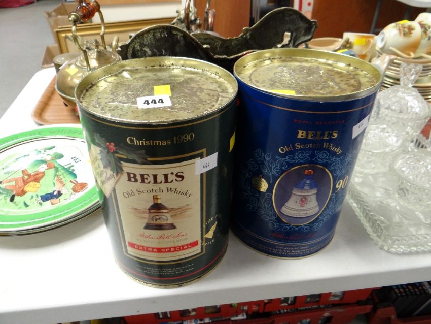 Two boxed Wade Bell's Scotch whiskey commemorative bell-shaped decanters commemorating the 90th birthday of the Queen Mother & Christmas 1990