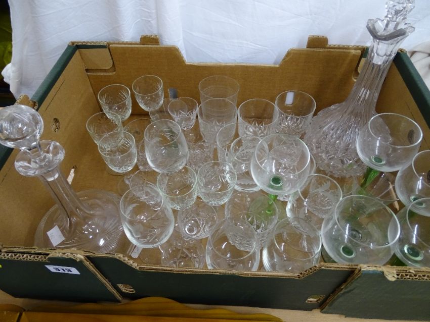 Cut glass claret jug, vintage decanter and a quantity of drinking glassware
