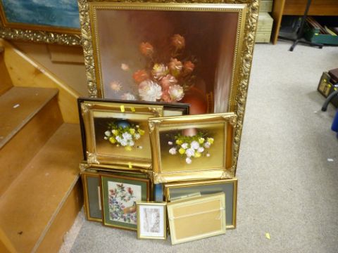 Mixed selection of gilt framed modern oils on canvas, pictures and prints