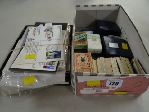 Parcel of cigarette cards, coins, First Day Cover stamps etc