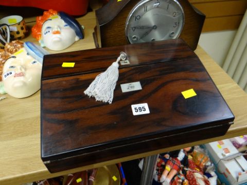 A neat rosewood & mother-of-pearl decorated writing box by W H Tooke of Liverpool