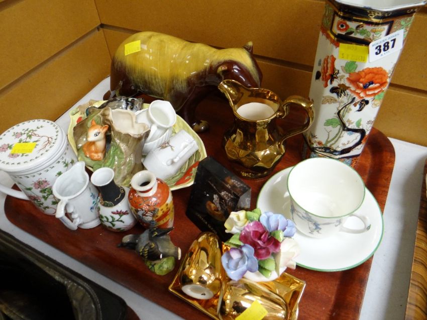 Tray of various ornaments including lustre jug etc