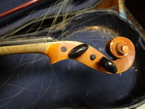 A cased violin & bow (for repair)