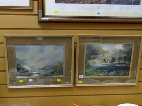 A pair of watercolours of a Welsh river & Welsh lake scene