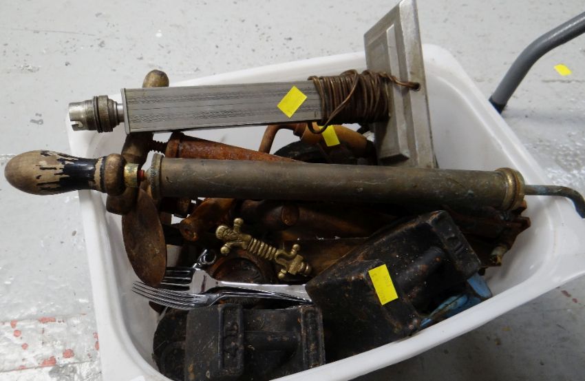 Crate of various tools, weights etc
