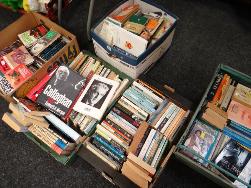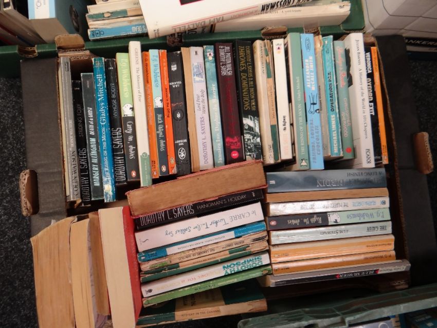 Five boxes of various hardback & paperback mainly fiction & some biography