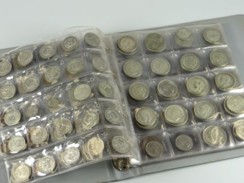 An album of silver pre-decimal half crowns, shillings etc