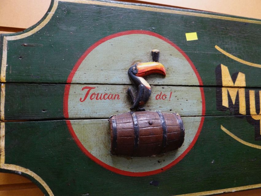 A vintage painted wooden Guinness advertising sign 'My Goodness, My Guinness', 300 x 39cms