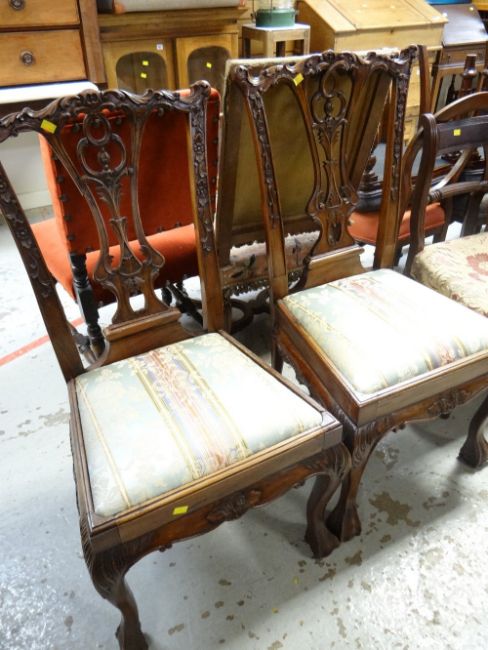 Two Chippendale-style claw & ball cushion seat dining chairs
