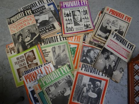 Crate of vintage publications including Private Eye, World Cup Goal etc