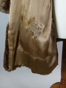 A CIRCA 1940S OCELOT FUR SHORT-COAT with deep-turned brown fur cuffs and collar, brown silk lining with embroidered HG monogram