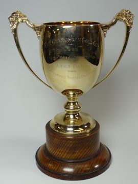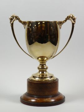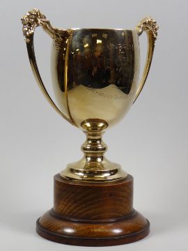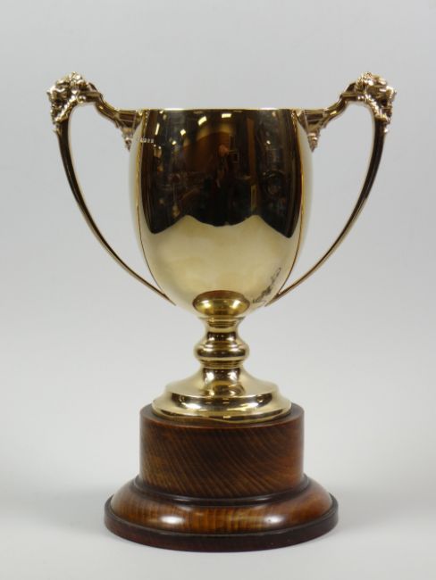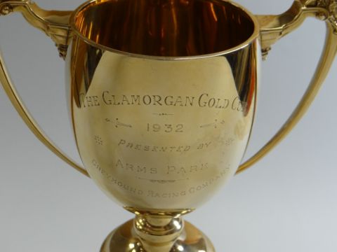 Provenance & Background: The trophy was won by Beef Cutlet, one of the most famous greyhounds of all time and a hugely influential dog in terms of lineage and the history of the sport. He was whelped in 1930, soon after greyhound racing was established and was one of the fastest greyhounds ever to run on the track or coursing field, Going on to pass outstanding qualities to his breeding line and form a new generation of sporting greyhounds. After reaching the last four of the National Breeders' Stakes at Powerstown in 1932, he was purchased from breeder J.A. Byrne by Sir Herbert Merrett the then chairman of Cardiff City Football Club as a present for his daughter, Joan Merritt. The trophy represents Beef Cutlet's first race which was held at Arms Park, Cardiff, for the Glamorgan Gold Cup. He won the race in a new track record, covering the 500yds in an outstanding 28.41sec.