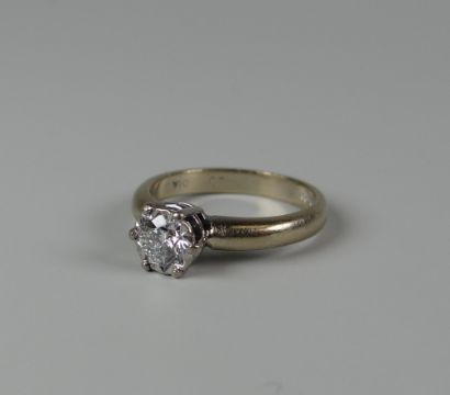 AN 18CT WHITE GOLD DIAMOND SOLITAIRE RING in six claw setting, visual estimate 0.6ct