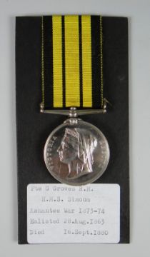 VICTORIAN ASHANTEE MEDAL engraved to Private G Groves RM, HMS Simoom 73-74, (with printed information card)