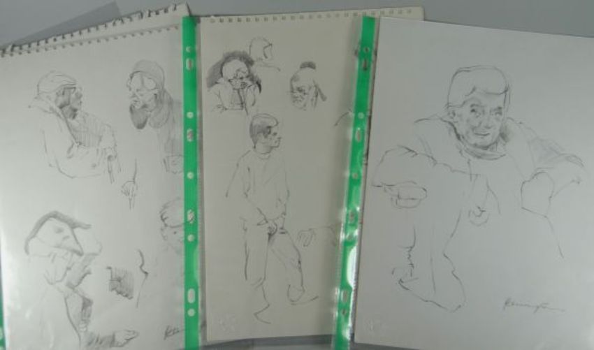 A YELLOW HARDBACK ALBUM containing pencil & ink studies entitled 'Charles' by John Cherrington, Hornsea College of Art, 1960