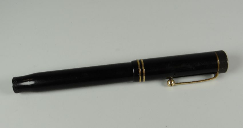 VINTAGE BLACK PARKER SENIOR DUOFOLD LUCKY CURVE FOUNTAIN PEN with double cap band