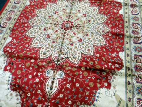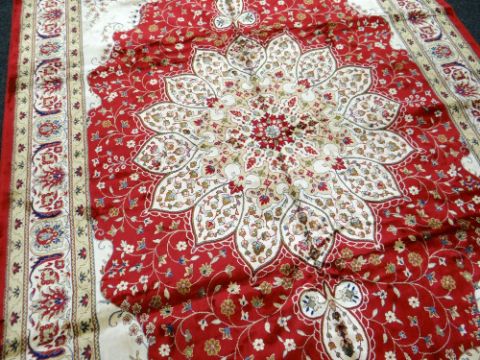 RED GROUND KASHMIR CARPET floral medallion design, 232 x 325cms