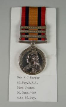 QUEEN'S SOUTH AFRICA MEDAL with three clasps Johannesburg, Paardeberg & Cape Colony, engraved to 20804 DRWJ Mercer, 62BRFA