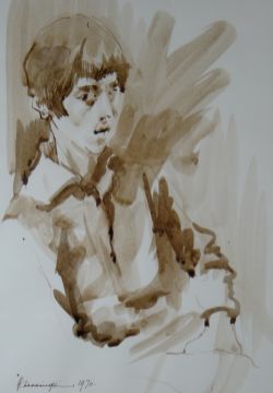 JOHN CHERRINGTON three early inkwash drawings - figures, two signed with dates 1962 and 1970, various sizes largest being 31 x 25cms